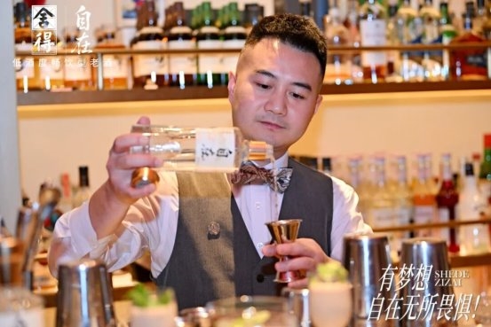 活动现场的创意特调体验,也在打破老酒“饮用边界”。调酒师以舍得自在为基底,搭配果汁、气泡水等食材,调制多款创意饮品,让老酒的醇厚在碰撞中展现出多元风味。这一环节不仅展现了舍得自在的风味延展性,更打破了消费者对老酒饮用形式的认知。