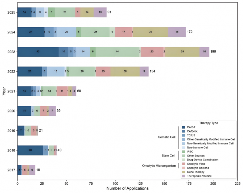 来源:Trends in the development of cellular and gene therapy in China
