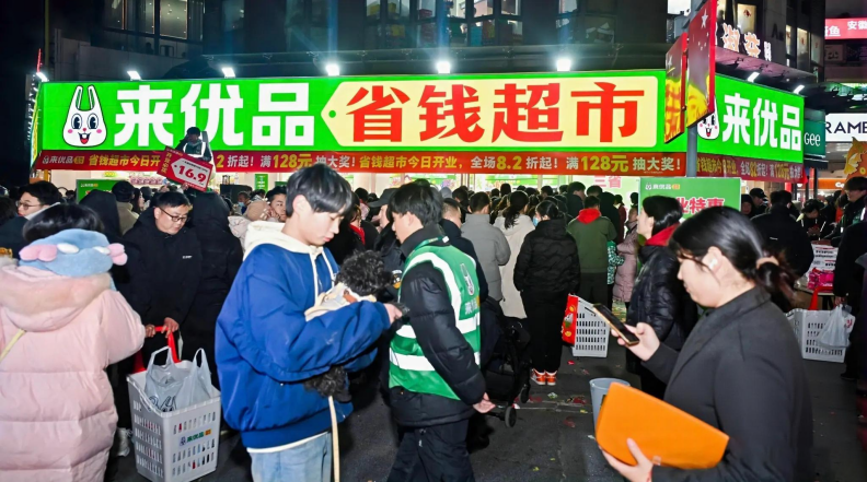 2025年1月10日,万辰集团旗下“来优品省钱超市”全国首家超级店于合肥武里山天街开业。该店面积约300平方米,SKU数量达3000余个,涵盖零食、日化、烘焙、冻品及鲜卤等多元品类。“来优品省钱超市”通过“核心层+扩展层+战略层”的三维布局,以网红零食吸引年轻客群,并拓展高频刚需品与自有品牌商品,同时依托供应链效率实现“硬折扣”定价,为大众市场提供高质价比的综合零售解决方案。