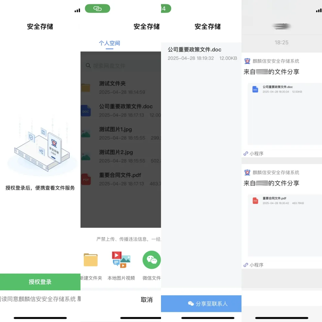 在数据即资产的时代,麒麟信安安全存储微信小程序将作为企业信息防泄露的得力工具,全方位守护数据资产安全,让数据在传输、存储与流转的全流程中无后患之忧,助力各行各业在数智化浪潮中稳健前行!